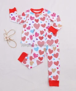 Baby Clothing Two-piece Set Bamboo Baby Pajamas Heart Valentine’s Day Gifts Box Wholesale Children Clothes Boysand Girls