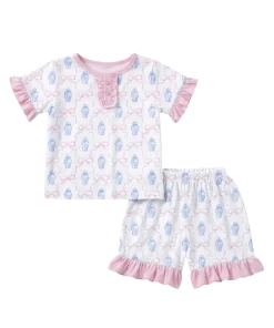 Puresun Eco-friendly Print Kid Sleepwear Sets Bamboo Viscose Girl Nightgown Ruffle 100% Organic Cotton Girls Pajamas