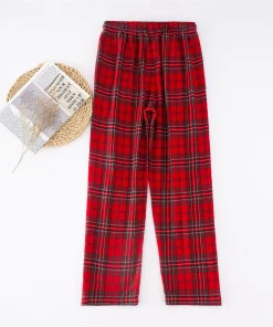 Wholesale 100% Cotton Men’s Pajama Pants Red Plaid Flannel Loungewear Thermal Sleepwear for Men