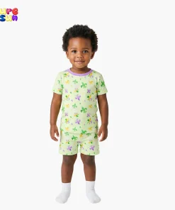 Puresun 100% Organic Cotton Breathable Summer Boys Sleepwear Short Sleeve Printed Bamboo Viscose Pajamas