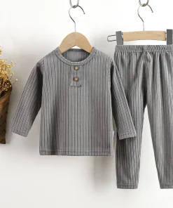 Spring Autumn Kids Pajamas Set Casual Home Wear Long Sleeve Boys Pyjamas Solid Children Sleepwear Girls Two Piece Nightwear