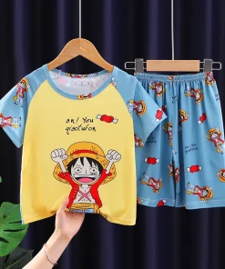 Girls Summer Thermal Breathable Plus Size Cartoon Pajamas Toddler Shorts Sets Sleepwear Kids Polyester 2-Piece d Colors