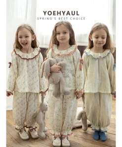 YOEHYAUL C2917 CE CPC Cotton Spring 2PCS Homewear Child Pajamas Set for Girls Kids Sleepwear Pajamas Manufacturers Logo