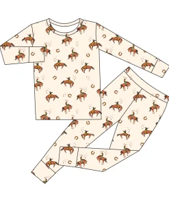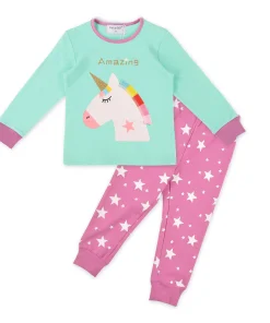 Kids Girls Animal Print Soft Breathable Cotton Spandex Knitted Plus Size Autumn Pajamas Set Embroidered Sleepwear
