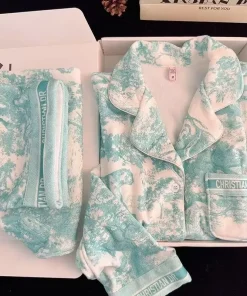 Pajamas Women’s Autumn Winter Thermal Thickened Island Velvet Long-sleeved Suit Light Luxury High-end Jungle Ink Painting