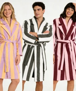 Hongbo Luxury Women Bathrobes Wear Cozy Breathable Adults Bloom Stripe Robe Long Sleeve Dressing Gown for Mens and Womens