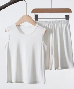 Summer Model Pajamas Vest 2 Pieces Set Sleeveless Solid Color Wholesale Homewear for Boys and Girls