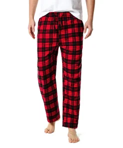 Men’s Logo Plaid Pattern Flannel Pajama Pants Casual Winter Sleepwear Thermal Breathable Features 100% Polyester for Cold