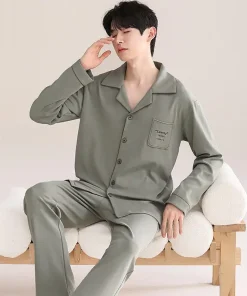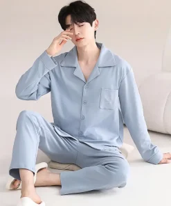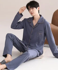 2025 Men’s Luxury 100% Cotton Breathable Long Sleeve Knitted Home Wear Nightwear Pajamas for Summer and Winter Sleepwear