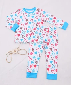 Baby Clothing Two-piece Set Bamboo Baby Pajamas Heart Valentine’s Day Gifts Box Wholesale Children Clothes Boysand Girls