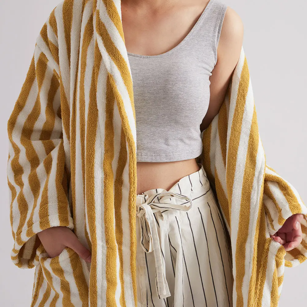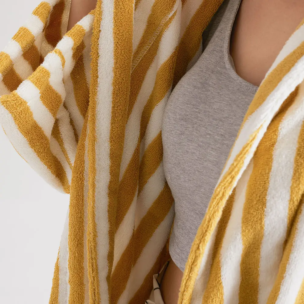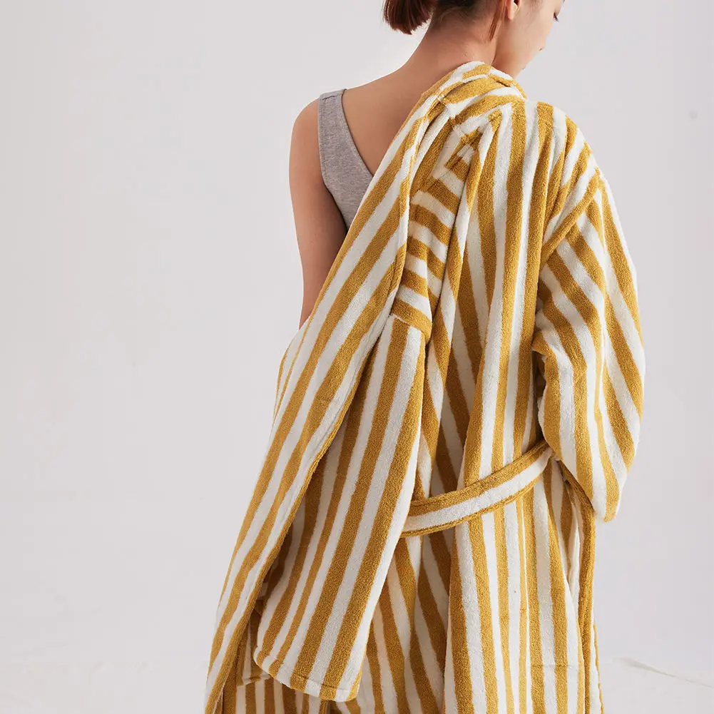 Bathrobe d Pattern Yarn Dyed Striped Terry Cotton Robes Premium Cotton Women Jacquard 100% Terry Cotton Bathrobe