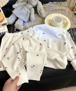 Factory Wholesale Children’s Baby Boys Girls Thermal Underwear Seamless 100% Cotton Boys Girls Two-Piece Two-piece Pajamas Set