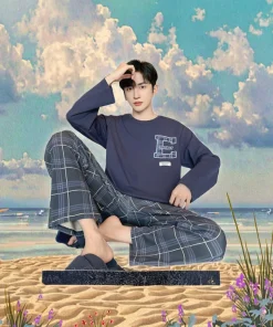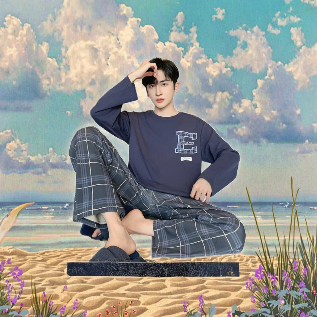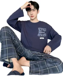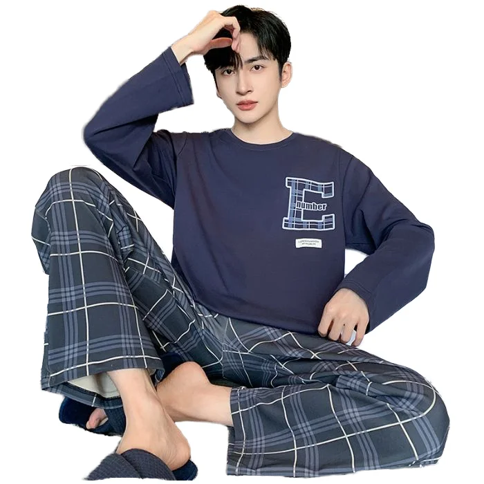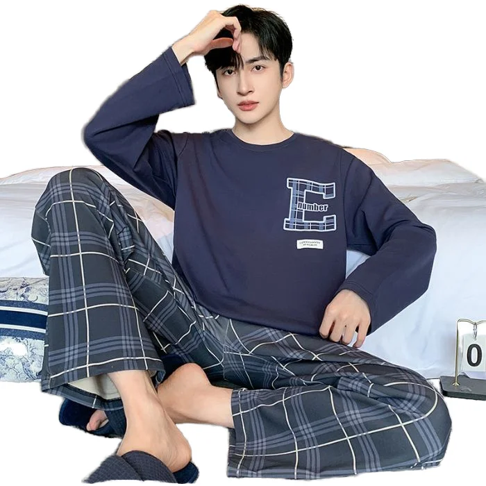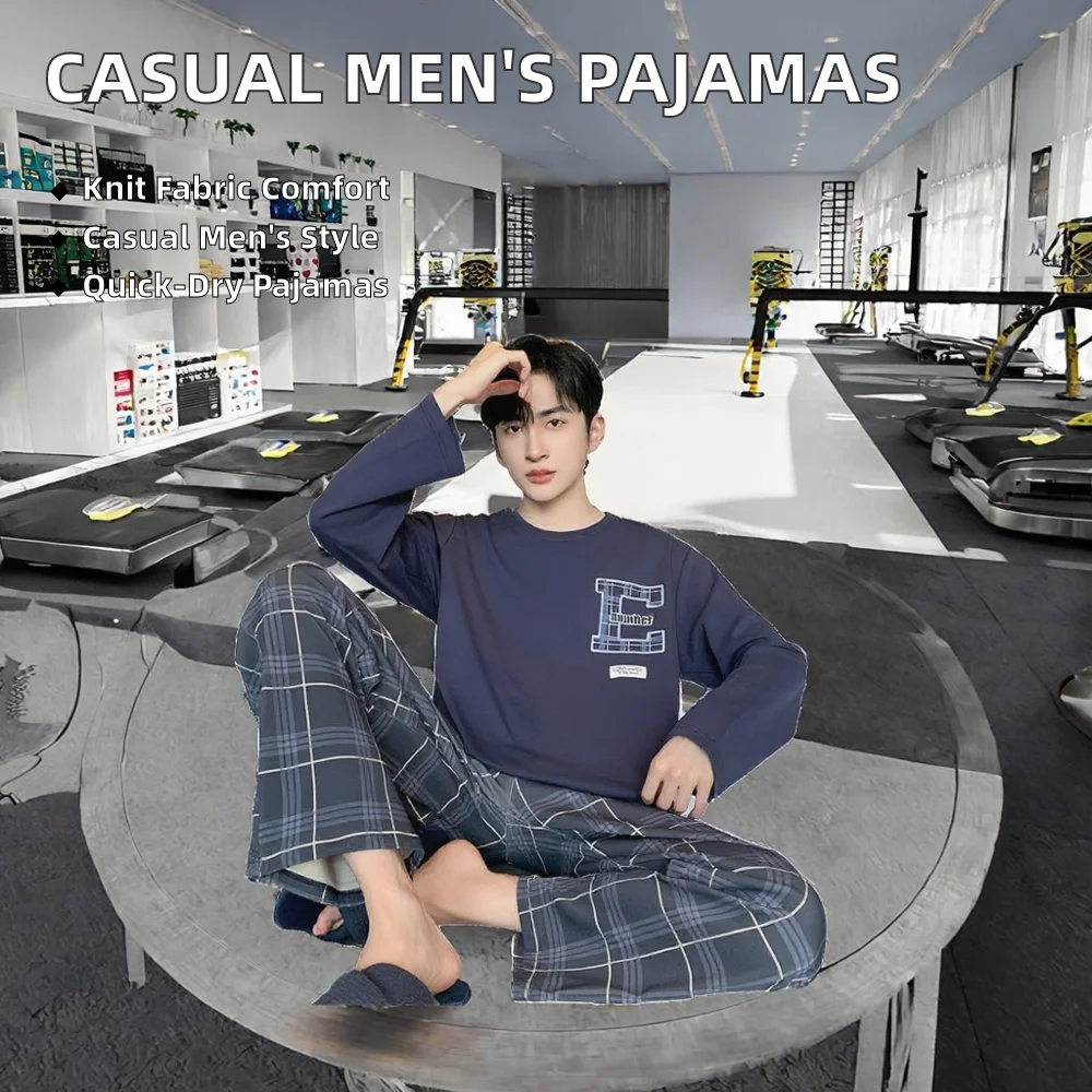 Foreign Trade Hot Selling Spring Autumn Casual Men’s Knitted 100% Polyester Solid Pajamas Long Sleeves Loose Fit Quick Dry