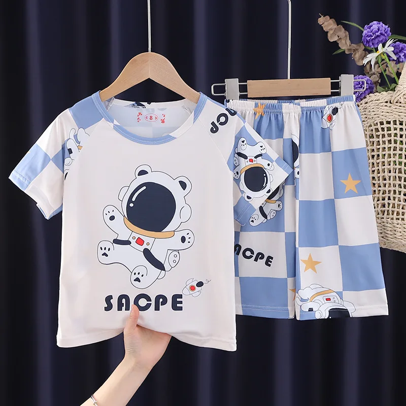 Girls Summer Thermal Breathable Plus Size Cartoon Pajamas Toddler Shorts Sets Sleepwear Kids Polyester 2-Piece d Colors