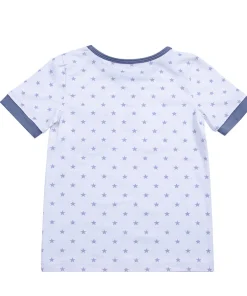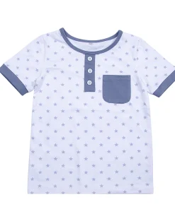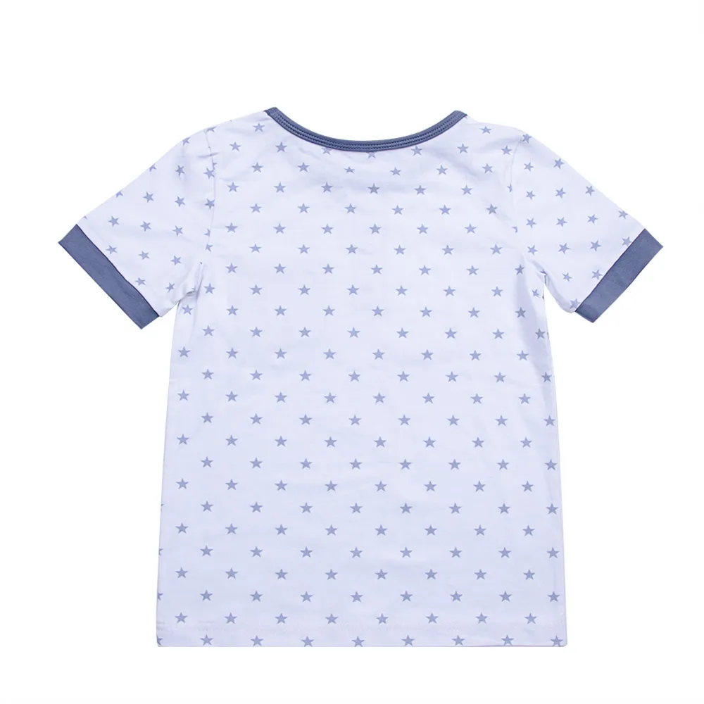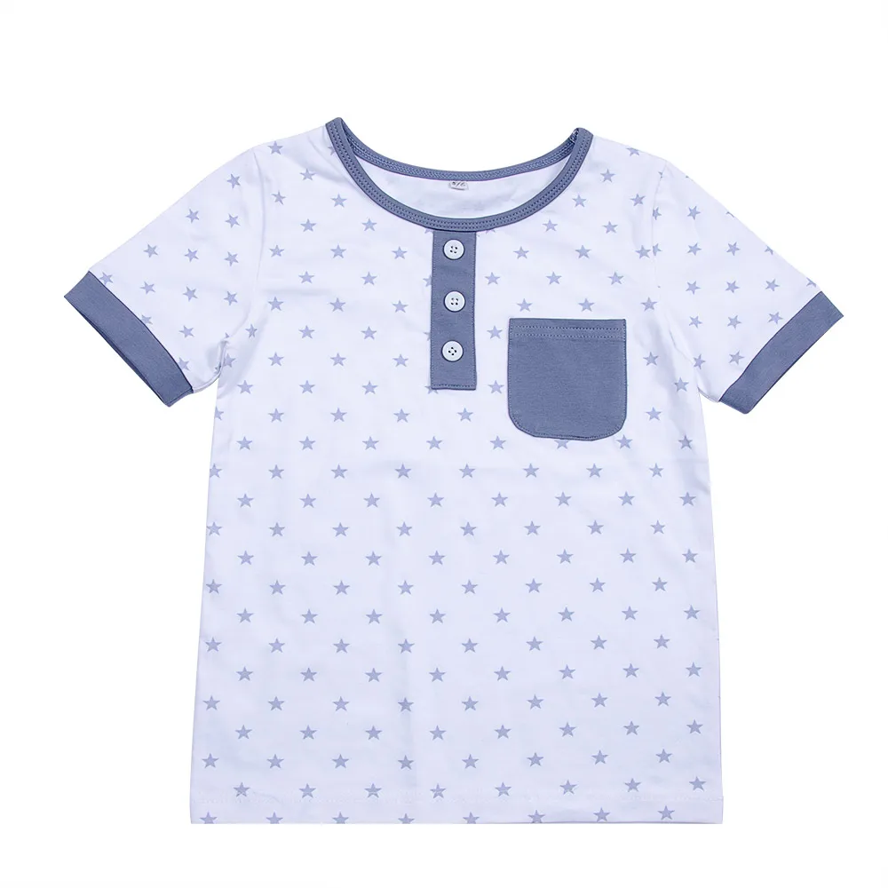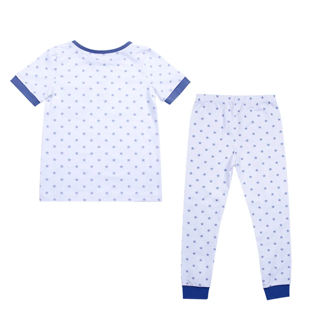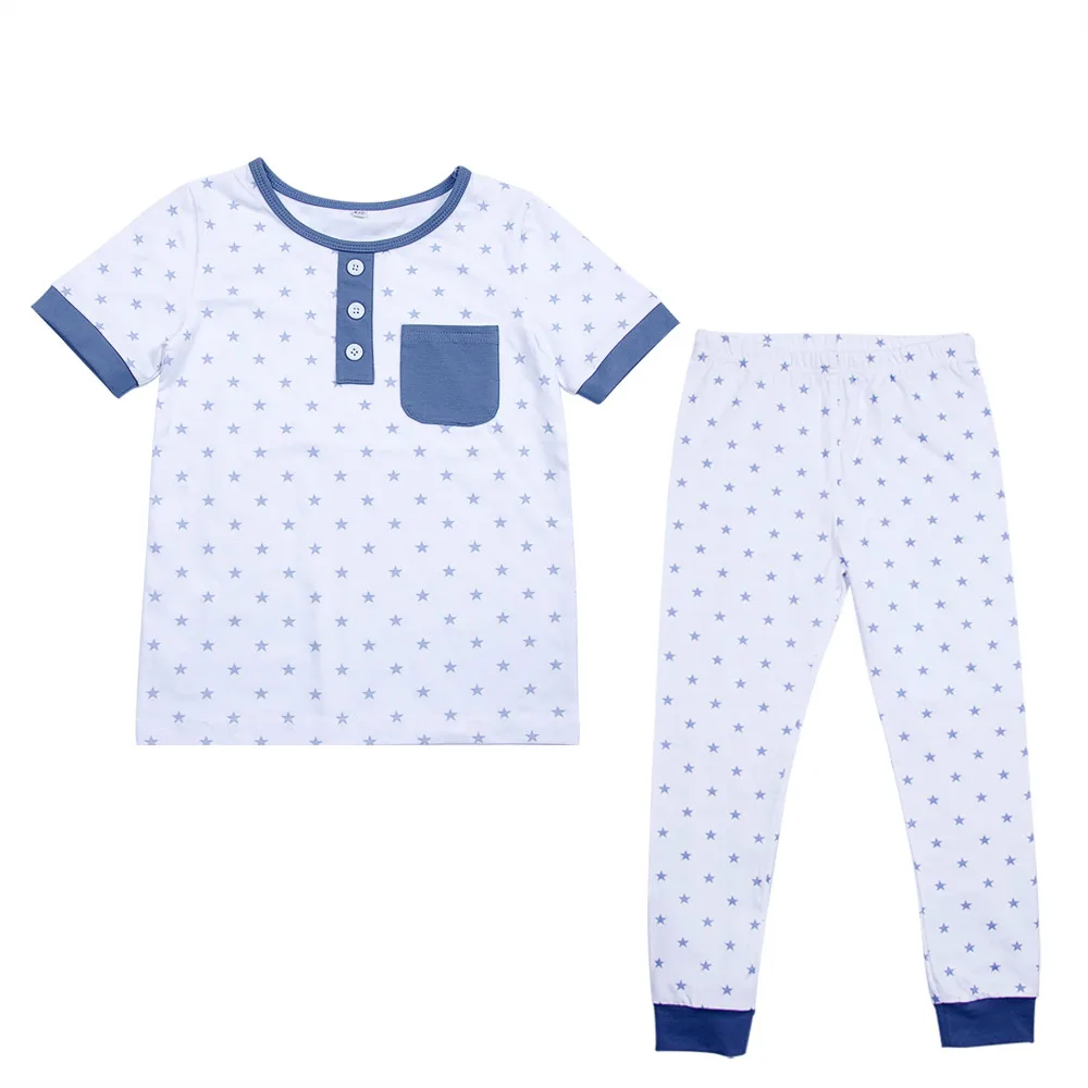 Kids Boys 2 Pcs Pajamas Sets Knit Full Print Stars Short Sleeve Pocket Button T Shirt With Ankle Pants Sleepwear