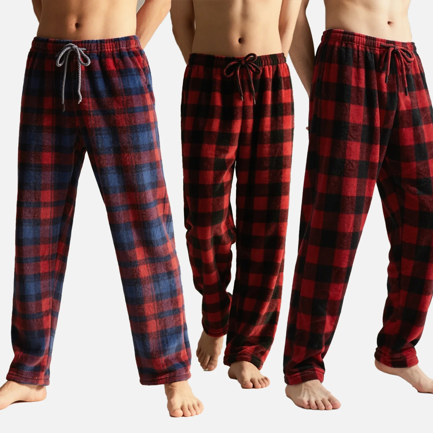 Men’s Logo Plaid Pattern Flannel Pajama Pants Casual Winter Sleepwear Thermal Breathable Features 100% Polyester for Cold