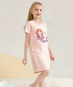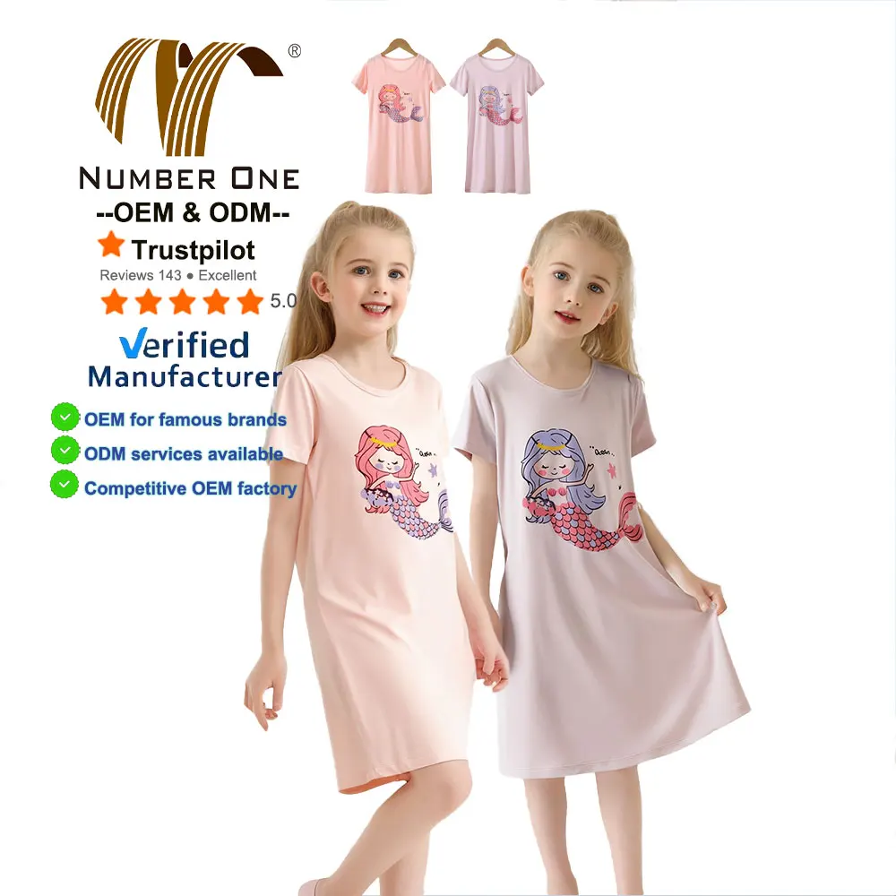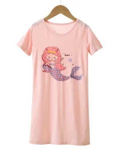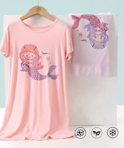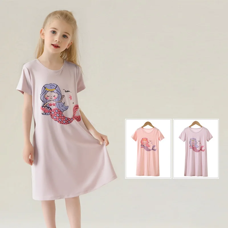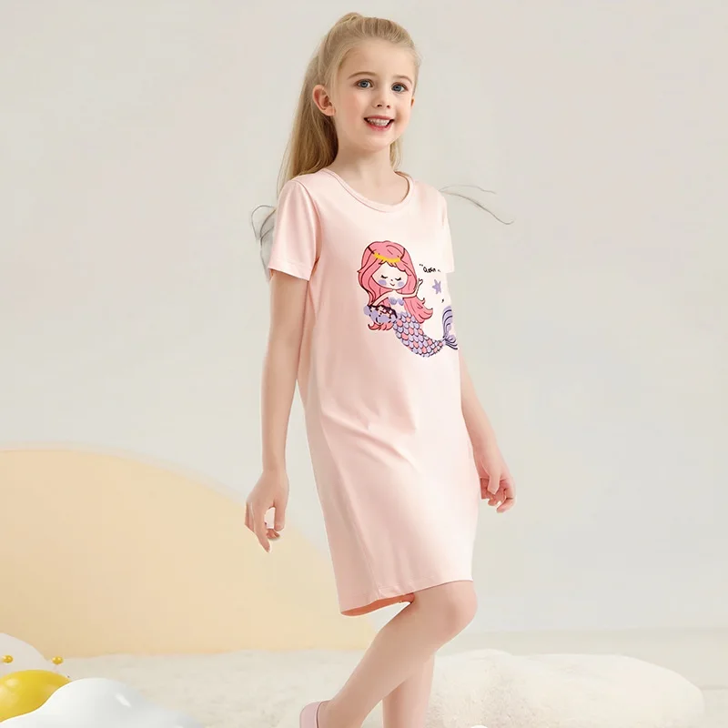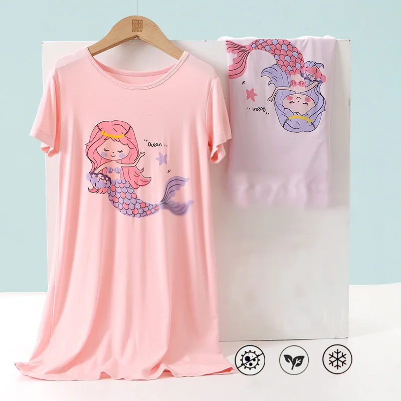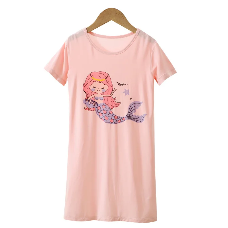 Modal Kids Pajamas Teen Night Gown Short Sleeve Cute Cartoon Children Sleepwear Teenager Pyjamas Girls Nightdress