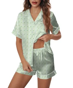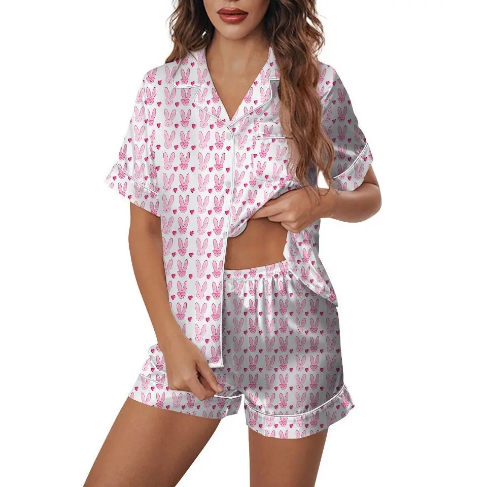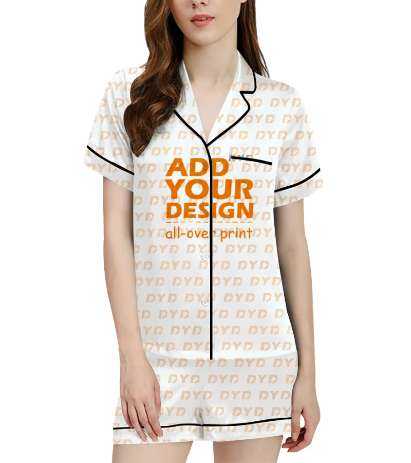 Print on Demand Luxury Lce Silk Pajamas Suits Sleepwear Summer Short Sleeved Nightwear Women Pijamas Sets