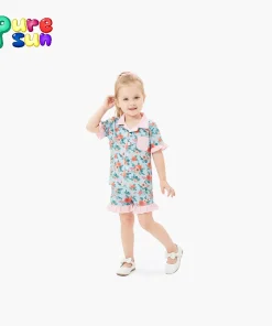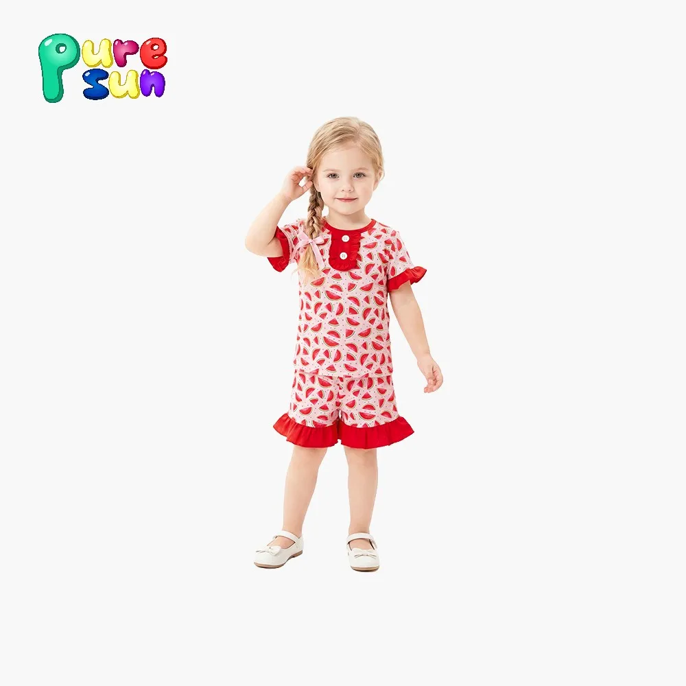 Puresun Manufacturer Polo Collar 100% Cotton Children’s Pajamas Solid Wholesale Girls Sleepwear Kid Pajama Set