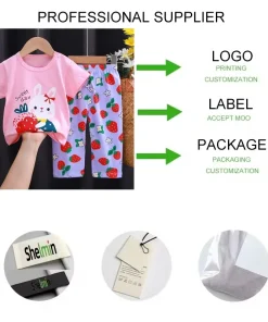 Unisex Kids Pajamas Set Girls Pyjamas Vetement Enfant Summer Short Sleeve Cotton Pyjamas Sleepwear Printed Girls Pajamas