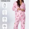 Women Long Sleeved Set Women Notch Collar Pajamas Set d Bamboo Fiber Lapel Breathable Pajamas for Women
